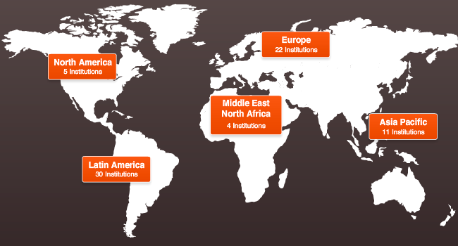 Somos 29 los países (incluyendo online) que pertenecemos a la Red, 80 universidades e institutos de educación superior y más de 950 mil estudiantes alrededor del mundo, en 5 continentes.